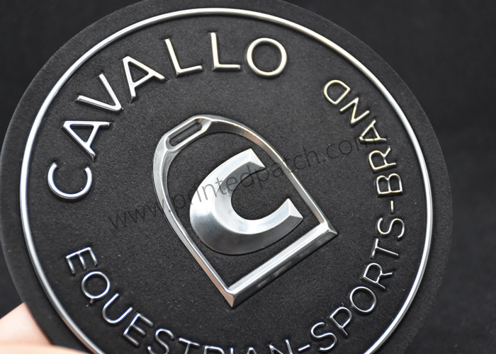 Brand Name : 2mm thickness 3D silver logo on black suede use on skiswear